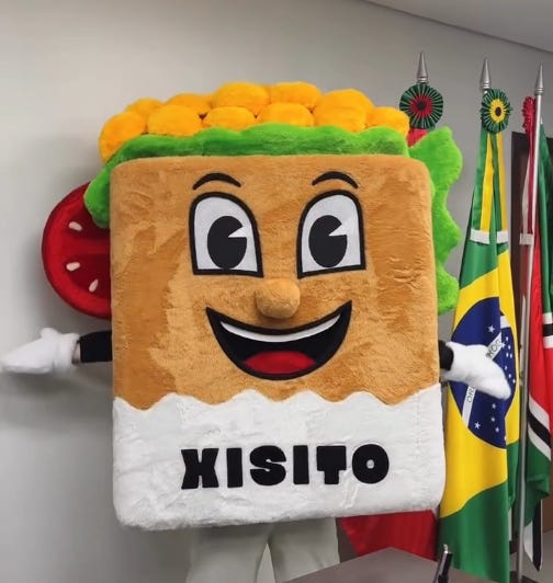 Sem querer entrar numa polêmica mas já entrando, eu tenho minhas questões com o XISITO. Primeiro que o pão de um x-salada não é quadrado. Isso aí é o mínimo. Nem era pra eu tar aqui te dizendo isso. Se o seu festival envolve um mascote em forma de hambúrguer, o mínimo que você precisa fazer é acertar o clássico formato redondo que todos nós amamos.