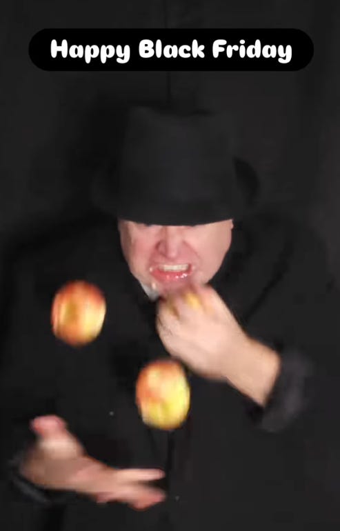 Falando em mensagem necessária, outro ativista que vem me agradando bastante é o Malabarista Mordedor de Maçãs, ou @apple_biting_juggler.