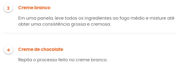 Creme branco: leve todos ingredientes ao fogo até virar creme. Ok. Que o objetivo final do creme é transformar em creme os ingredientes eu já sabia. Modéstia à parte. Será que vem ao caso mais algum detalhe? Talvez dividir o processo em etapas? Creme de chocolate: repita o acima. Ah… entendi. Tudo bem então. Desculpe incomodar!!